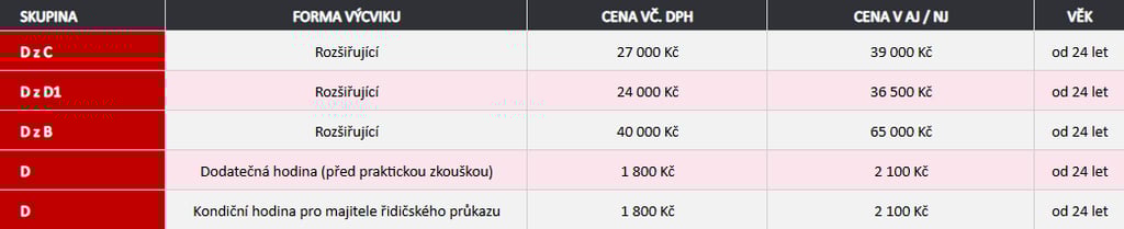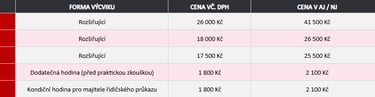 5. Školení pro rozšíření profesní způsobilosti (45 hodin): Cena 10 000 Kč / osoba.