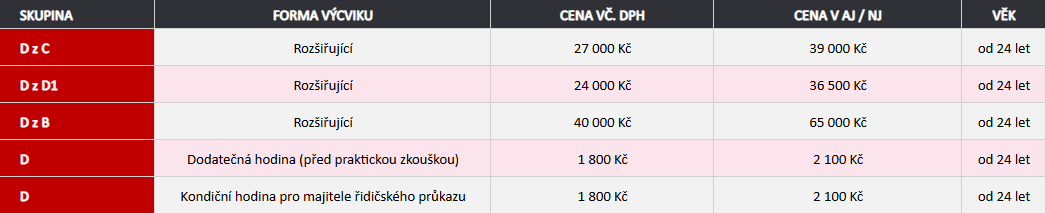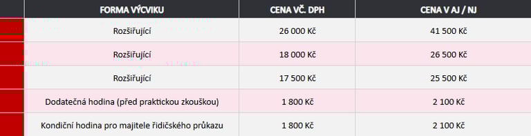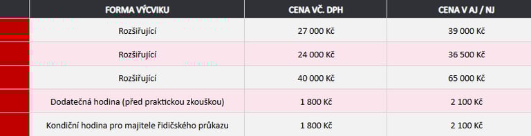 5. Školení pro rozšíření profesní způsobilosti (45 hodin): Cena 10 000 Kč / osoba.