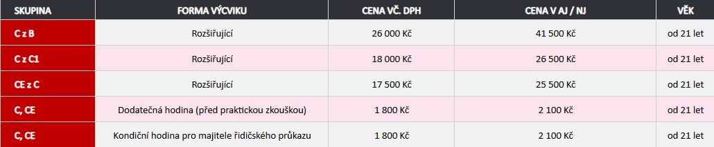 2. Vstupní školení k získání průkazu profesní způsobilosti (140 hodin jako základní rozsah): Cena od 18 000 - 25 000 Kč / osoba (podle počtu účastníků).